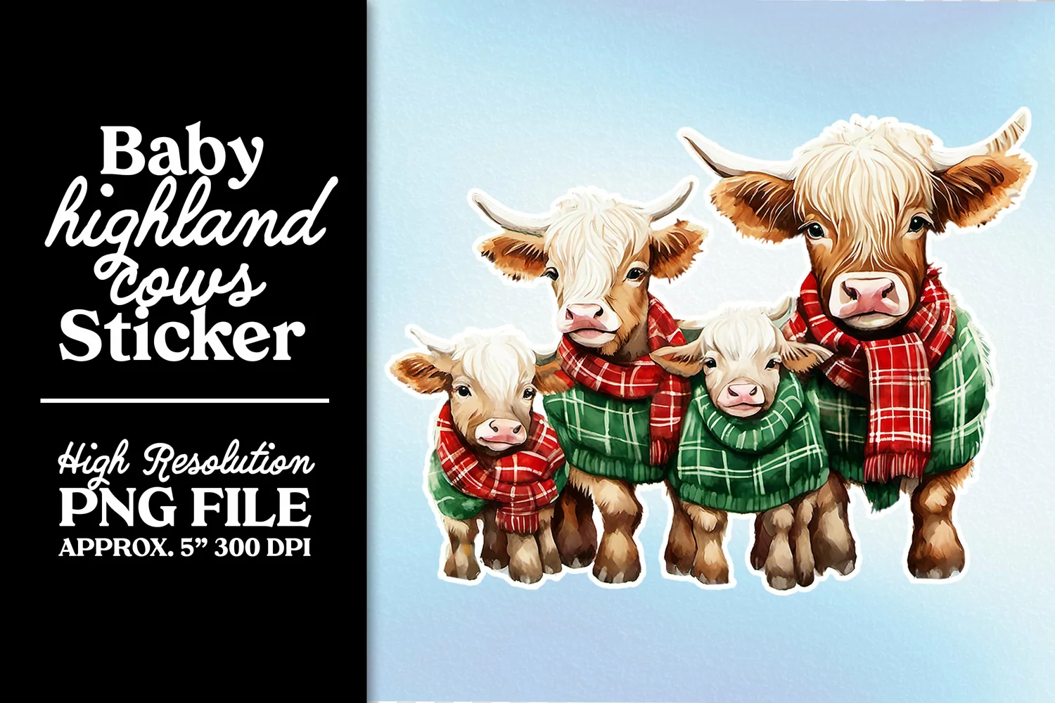 Christmas Highland Cow Family of Four PNG Sticker example image 1