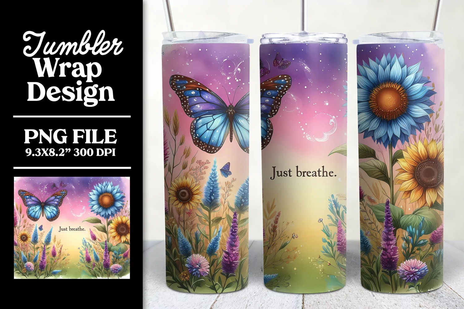 Tumbler Wrap | Just Breathe Butterfly Motivational Design
