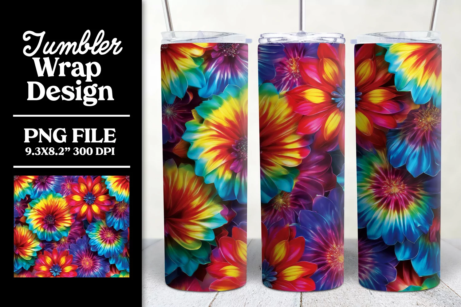 3d Tie Dye Flowers Tumbler Wrap Sublimation Design Colorful