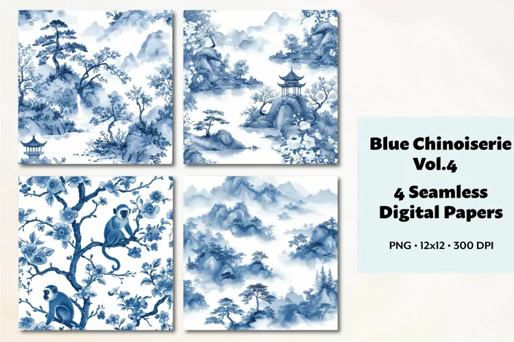 Blue Chinoiserie Seamless Digital Paper Vol, 4, 4 PNG