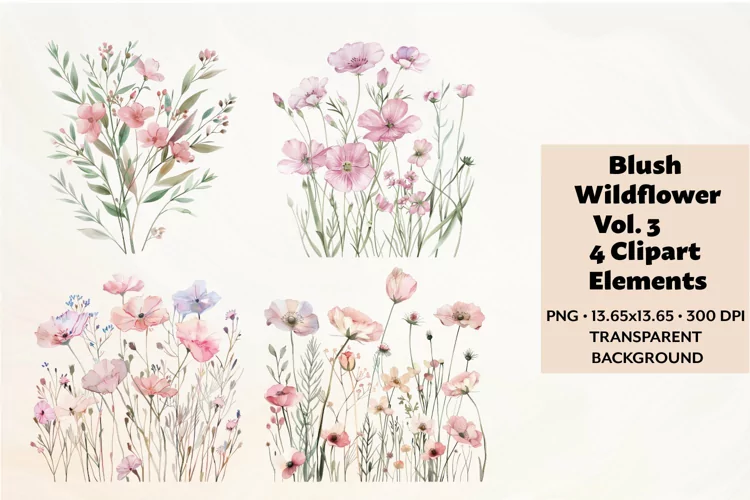 Blush Wildflowers Clipart Vol. 3, 4 PNG