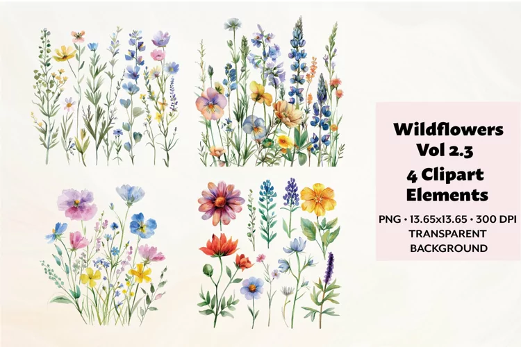 Wildflowers Clipart Vol. 2.3, 4 PNG