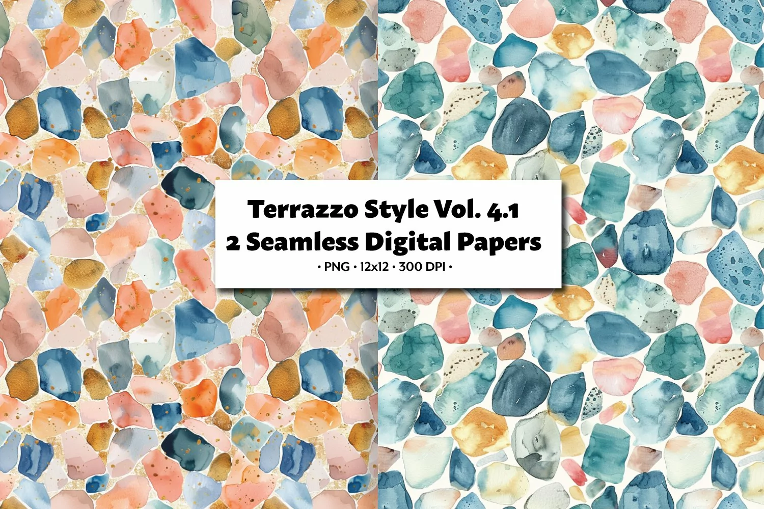 Enhance your digital creations with this set of Terrazzo-inspired seamless paper watercolor stone tiles! These high-quality PNG images feature intricate patterns and textures that capture the essence of natural stone. Perfect for adding a touch of elegance to your designs, whether you're working on digital scrapbooking, graphic design projects, or creating unique backgrounds. Elevate your artistic vision with these 2 tiles that will bring a touch of sophistication to your work.