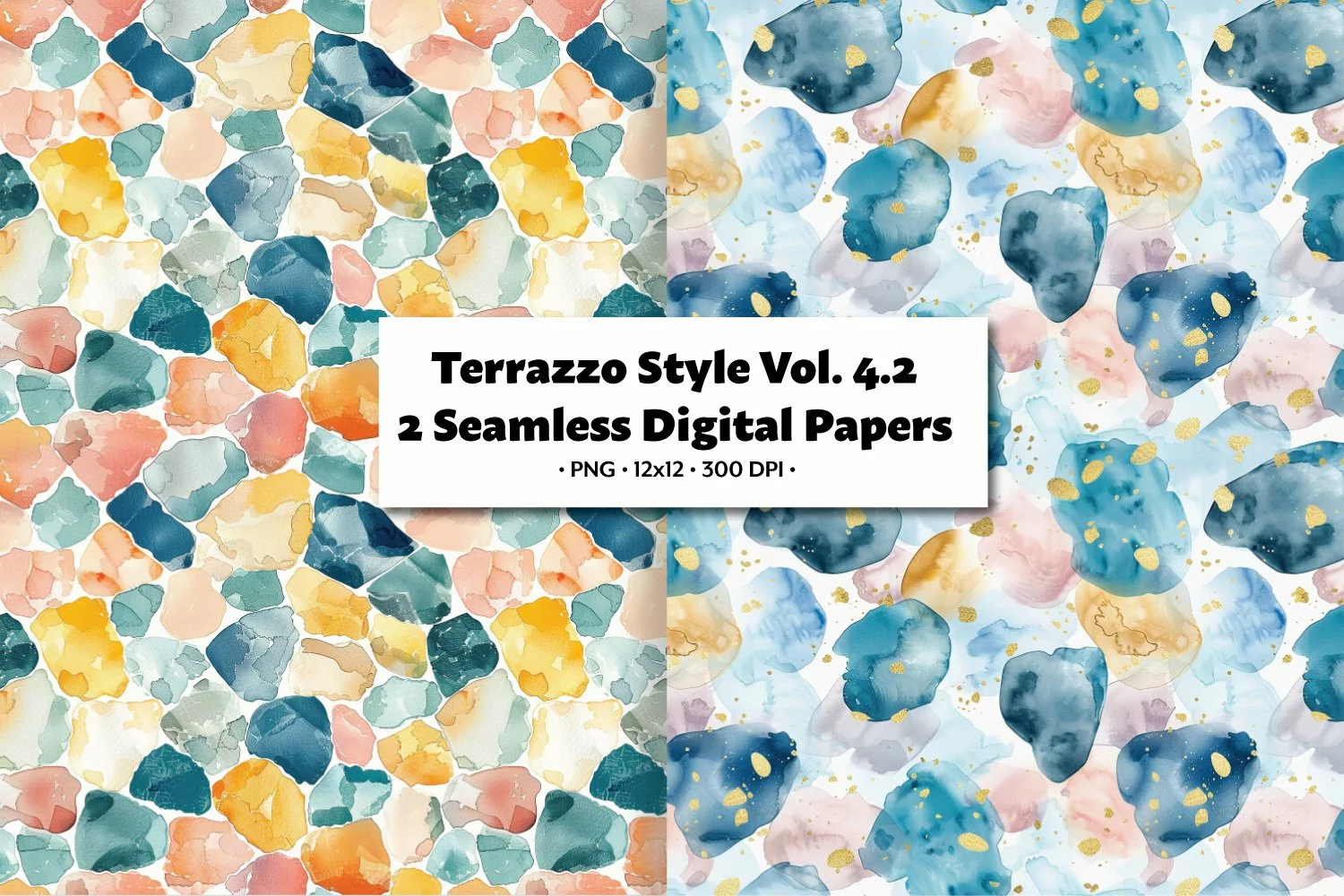 Enhance your digital creations with this set of Terrazzo-inspired seamless paper watercolor stone tiles! These high-quality PNG images feature intricate patterns and textures that capture the essence of natural stone. Perfect for adding a touch of elegance to your designs, whether you're working on digital scrapbooking, graphic design projects, or creating unique backgrounds. Elevate your artistic vision with these 2 tiles that will bring a touch of sophistication to your work.