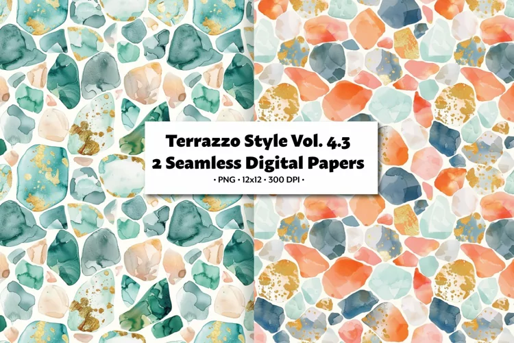 Enhance your digital creations with this set of Terrazzo-inspired seamless paper watercolor stone tiles! These high-quality PNG images feature intricate patterns and textures that capture the essence of natural stone. Perfect for adding a touch of elegance to your designs, whether you're working on digital scrapbooking, graphic design projects, or creating unique backgrounds. Elevate your artistic vision with these 2 tiles that will bring a touch of sophistication to your work.