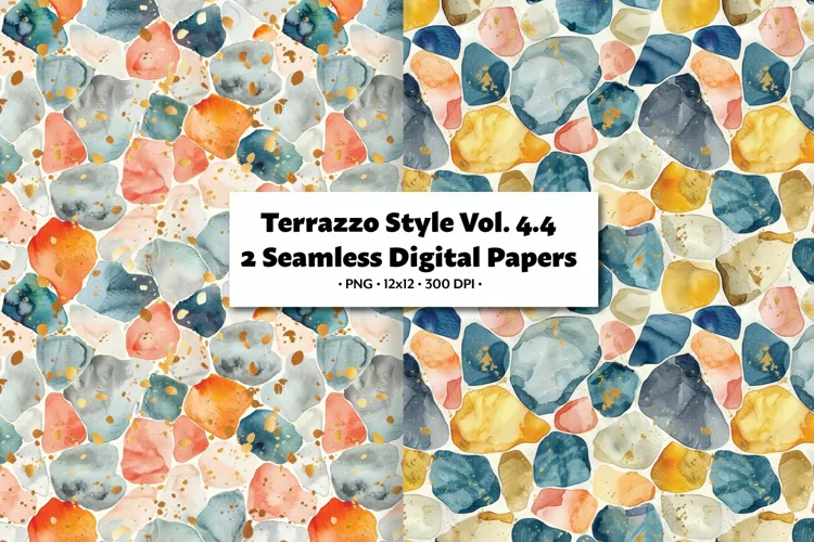 Enhance your digital creations with this set of Terrazzo-inspired seamless paper watercolor stone tiles! These high-quality PNG images feature intricate patterns and textures that capture the essence of natural stone. Perfect for adding a touch of elegance to your designs, whether you're working on digital scrapbooking, graphic design projects, or creating unique backgrounds. Elevate your artistic vision with these 2 tiles that will bring a touch of sophistication to your work.