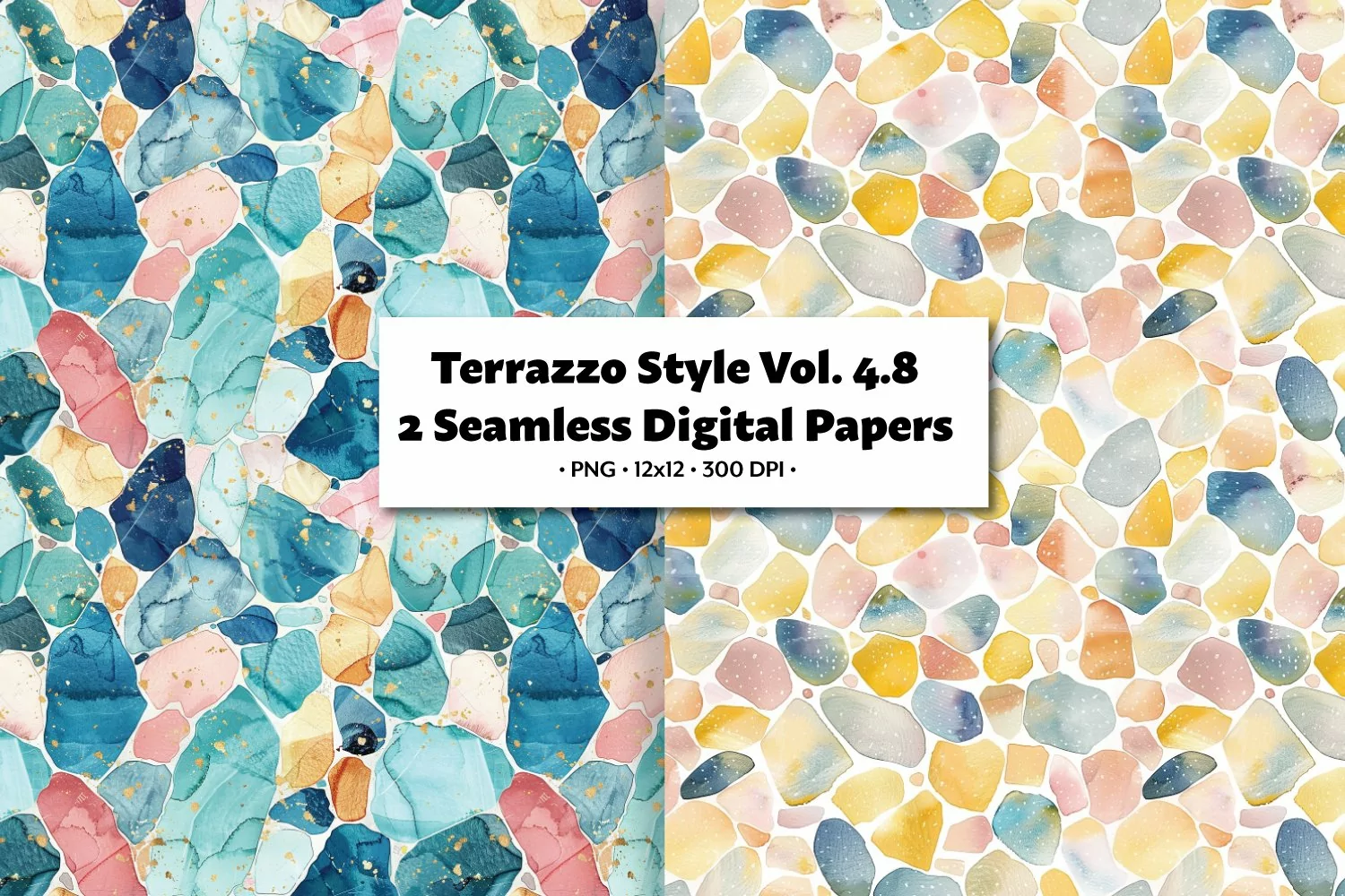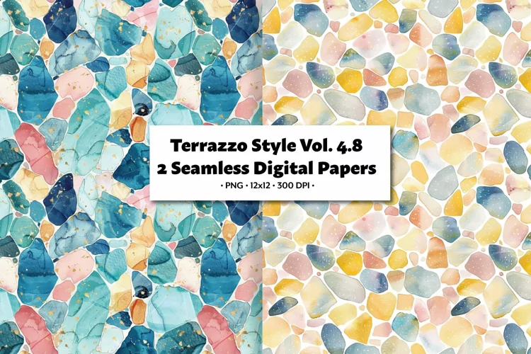 Enhance your digital creations with this set of Terrazzo-inspired seamless paper watercolor stone tiles! These high-quality PNG images feature intricate patterns and textures that capture the essence of natural stone. Perfect for adding a touch of elegance to your designs, whether you're working on digital scrapbooking, graphic design projects, or creating unique backgrounds. Elevate your artistic vision with these 2 tiles that will bring a touch of sophistication to your work.