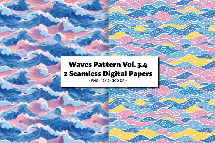 Introducing our Waves Pattern Vol.3 Digital Paper Pack, featuring a stunning collection of 2 intricate designs. These seamless patterns are perfect for all your scrapbooking needs, adding a touch of charm and elegance to your projects. With a delightful nautical theme, these multi-colored papers evoke a sense of tranquility and coastal bliss. Whether you're crafting invitations, designing stationery, or creating unique wall art, these versatile papers are sure to make a splash. Dive into creativity with our Waves Digital Paper Pack and let the ocean-inspired beauty wash over your creations.