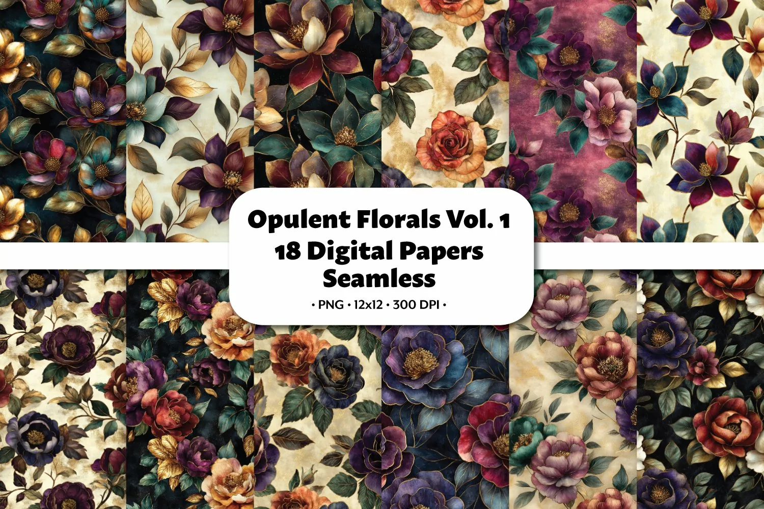 Opulent Florals Seamless Digital Paper,18 PNG-JPEG