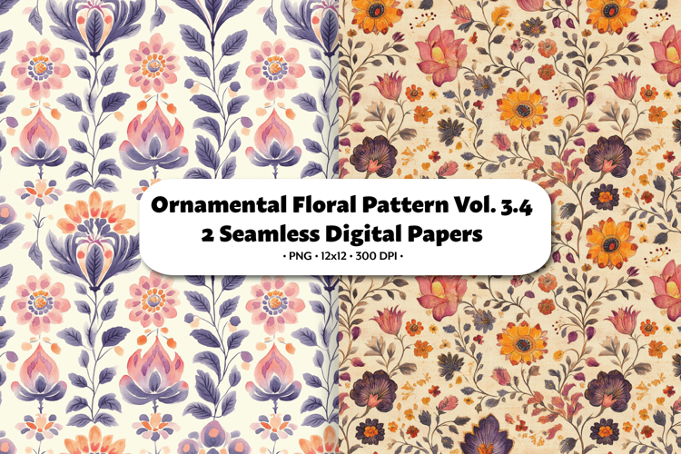 Ornamental Floral Seamless Digital Paper Vol.3.4, 2 PNG