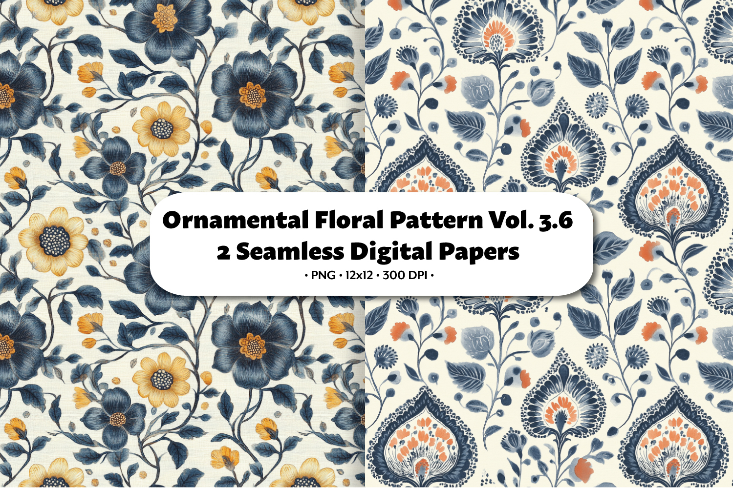 Ornamental Floral Seamless Digital Paper Vol.3.6, 2 PNG
