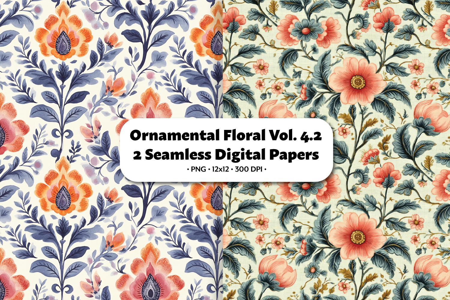 Ornamental Floral Seamless Digital Paper Vol.4.2, 2 PNG