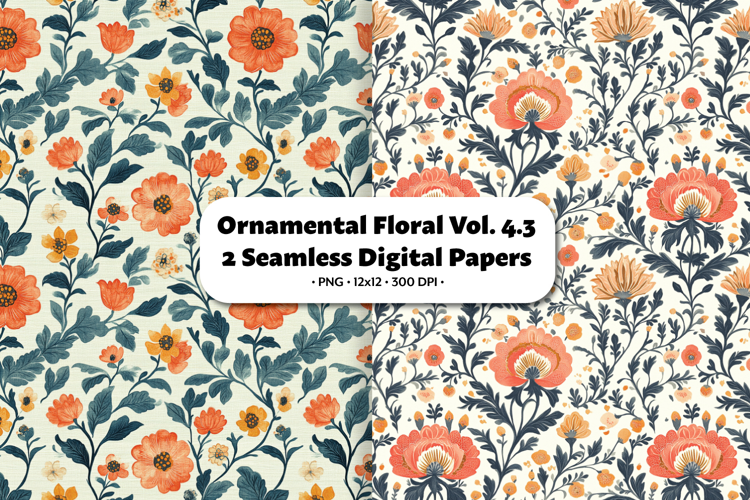 Ornamental Floral Seamless Digital Paper Vol.4.3, 2 PNG