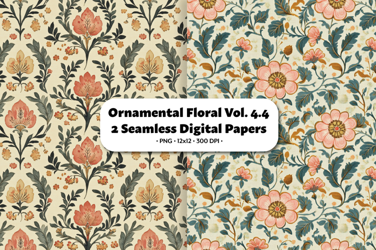 Ornamental Floral Seamless Digital Paper Vol.4.4, 2 PNG