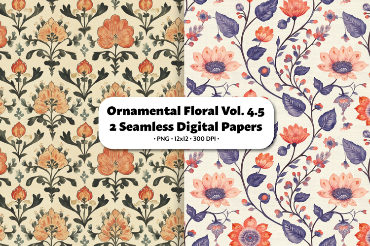 Ornamental Floral Seamless Digital Paper Vol.4.5, 2 PNG