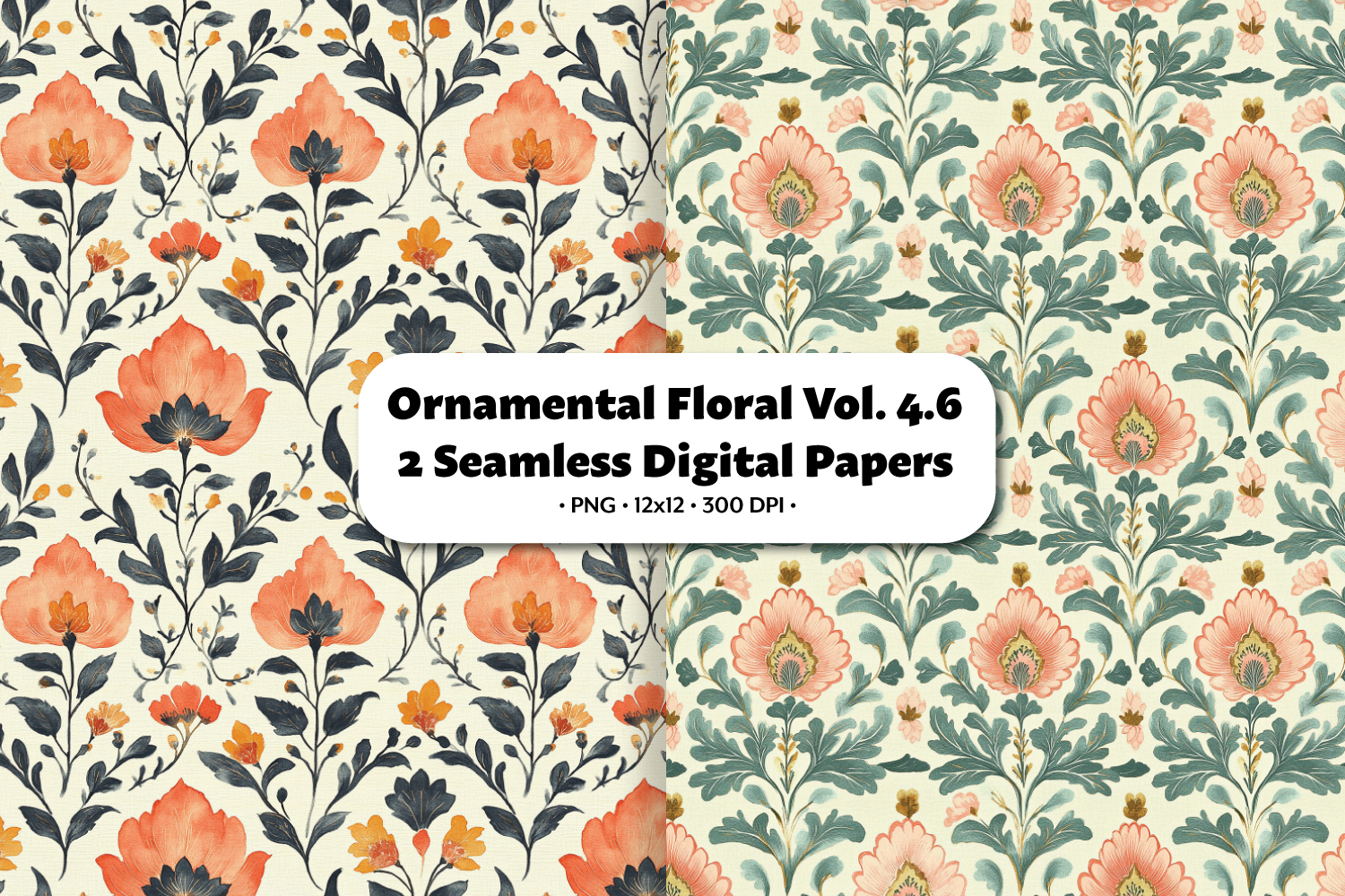 Ornamental Floral Seamless Digital Paper Vol.4.6, 2 PNG