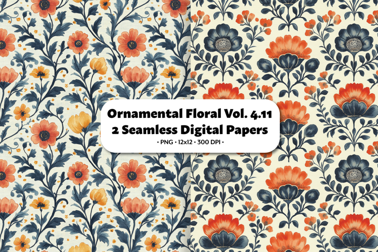 Ornamental Floral Seamless Digital Paper Vol.4.11, 2 PNG