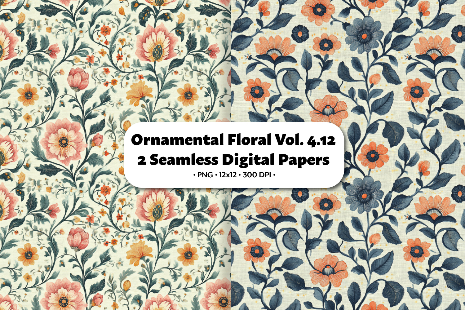 Ornamental Floral Seamless Digital Paper Vol.4.12, 2 PNG
