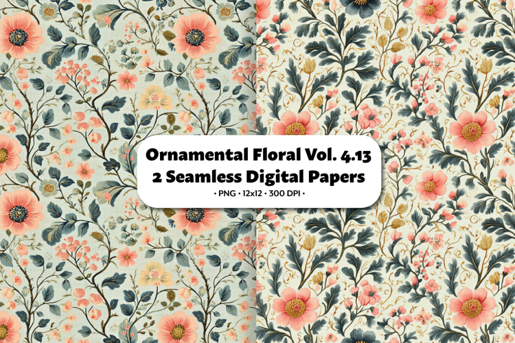 Ornamental Floral Seamless Digital Paper Vol.4.13, 2 PNG