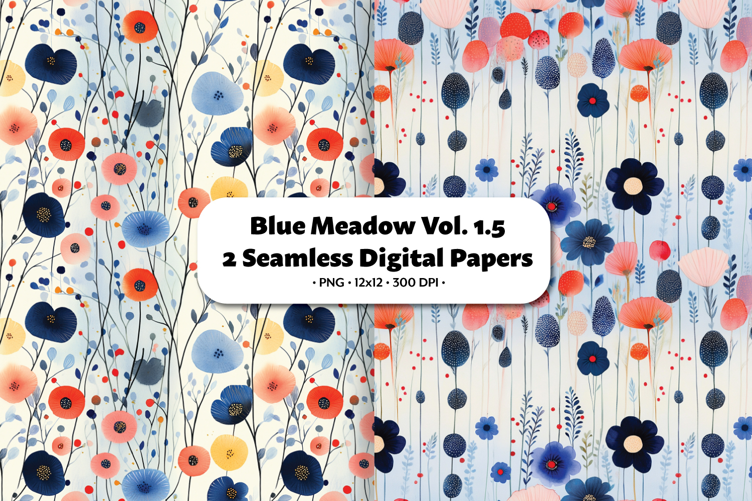 Blue Meadow Seamless Digital Paper Vol.1.5, 2 PNG