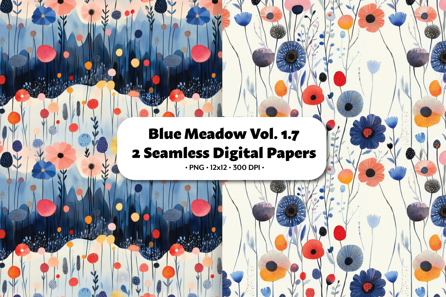Blue Meadow Seamless Digital Paper Vol.1.7, 2 PNG