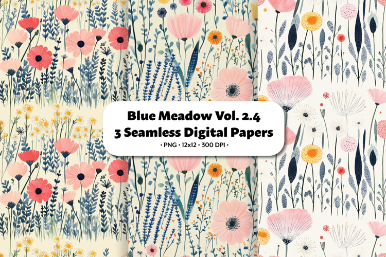 Blue Meadow Seamless Digital Paper Vol.2.4, 3 PNG