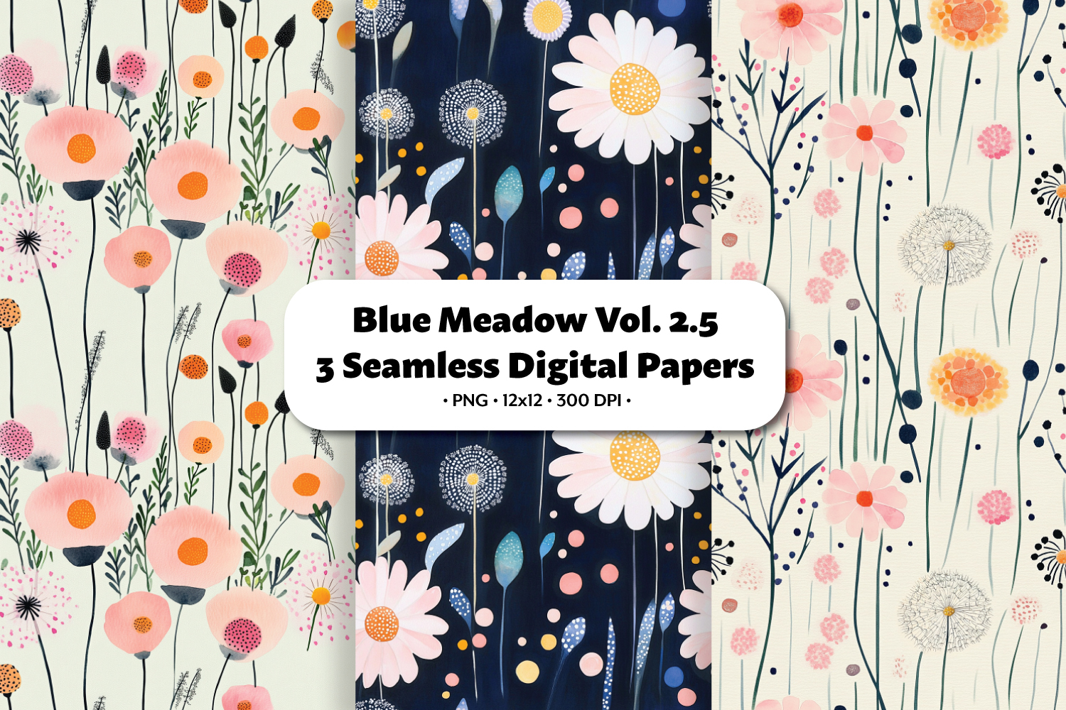 Blue Meadow Seamless Digital Paper Vol.2.5, 3 PNG
