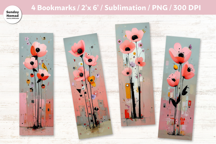 Floral Bookmark Vol.5, Printable Crafts, 4 PNG