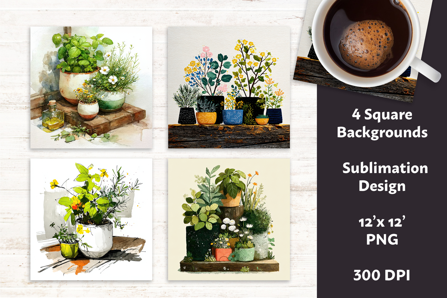 Bring the freshness of spring into your creative projects with this gentle watercolor botanical illustration featuring potted herbs — basil, rosemary, mint, and thyme — accented with tiny wildflowers. Painted in soft pastel greens and muted earth tones, this piece combines fine line-work with delicate watercolor washes and a subtle watercolor paper texture for an authentically hand-painted look.