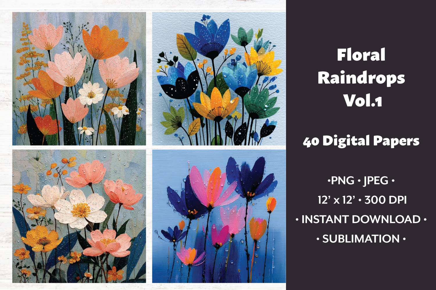 Floral Raindrops Digital Paper Vol.1, 40 PNG & JPEG