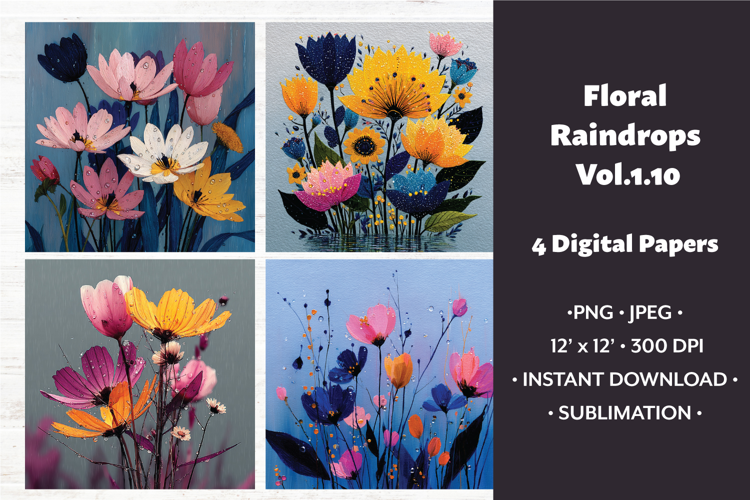 Floral Raindrops Digital Paper Vol. 1.10, 4 PNG & JPEG
