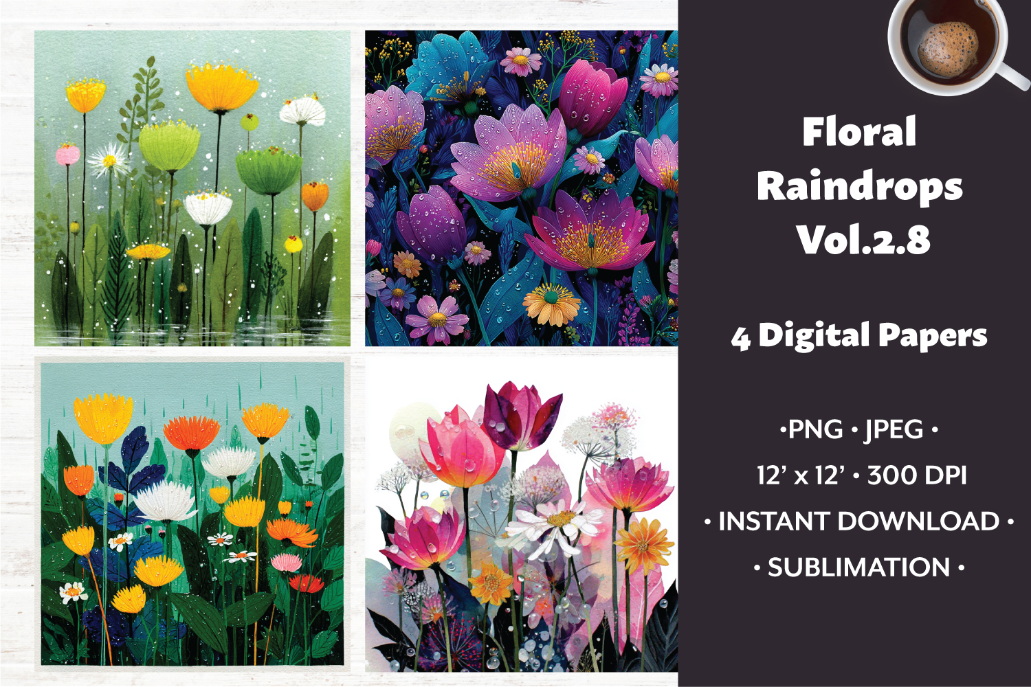 Floral Raindrops Digital Paper Vol. 2.8, 4 PNG & JPEG