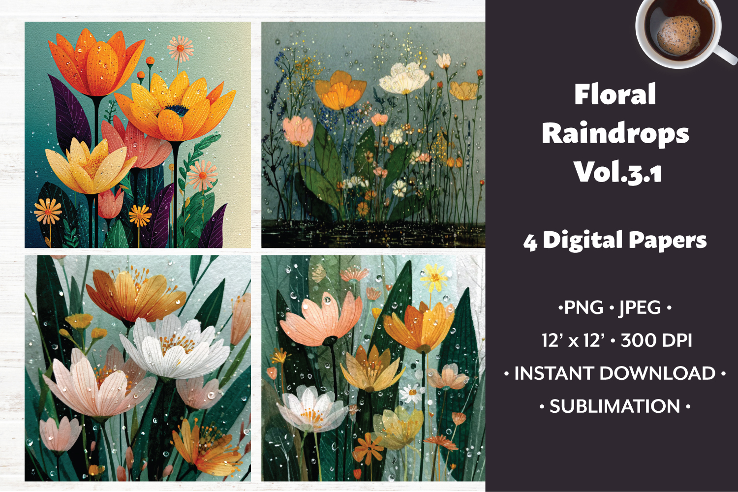Floral Raindrops Digital Paper Vol. 3.1, 4 PNG & JPEG