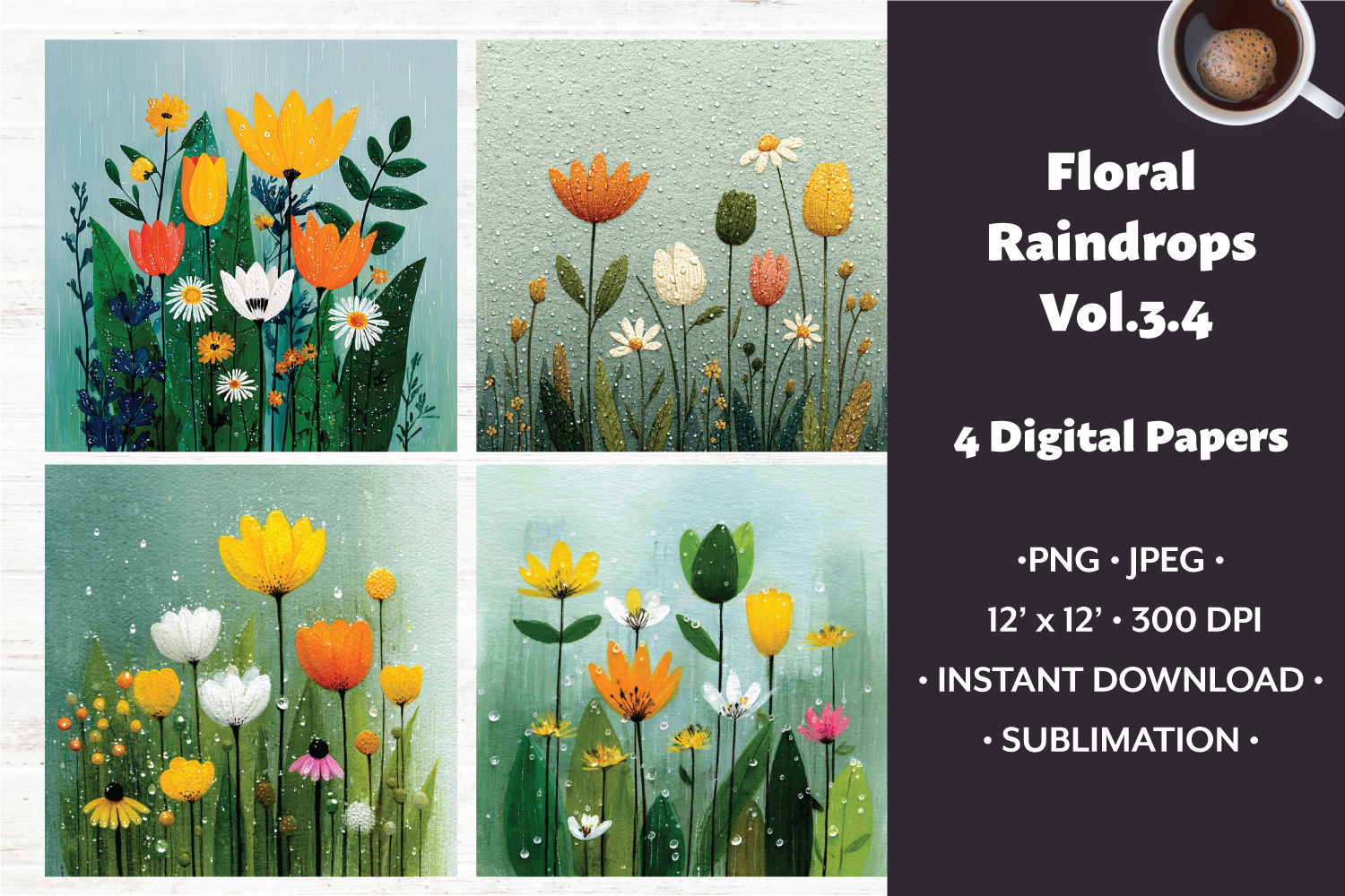 Floral Raindrops Digital Paper Vol. 3.4, 4 PNG & JPEG