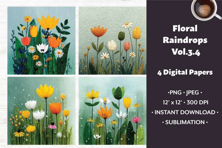 Similar Design Products to Floral Raindrops Digital Paper Vol. 3.4, 4 PNG & JPEG