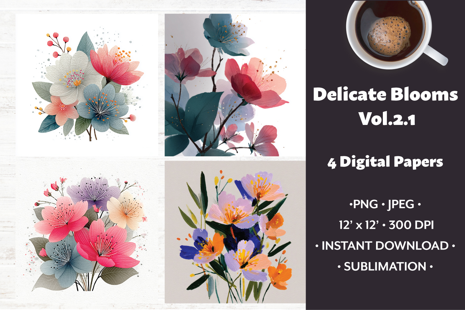 Delicate Blooms Digital Paper Vol. 2.1, 4 PNG & JPEG