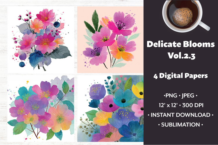 Delicate Blooms Digital Paper Vol. 2.3, 4 PNG & JPEG