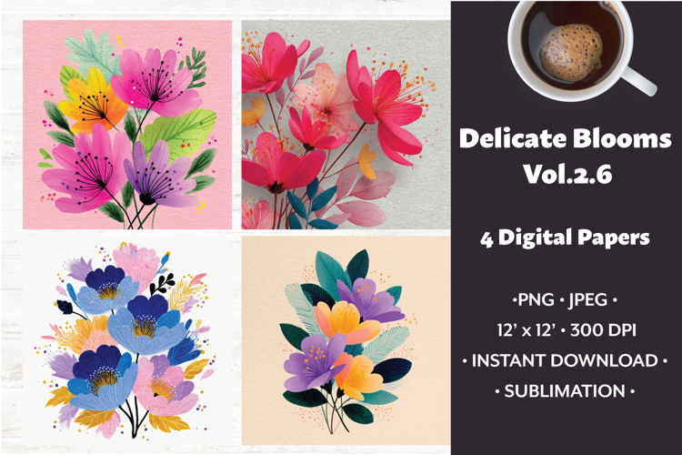 Delicate Blooms Digital Paper Vol. 2.6, 4 PNG & JPEG