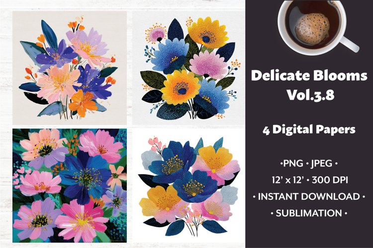 Delicate Blooms Digital Paper Vol. 3.8, 4 PNG & JPEG