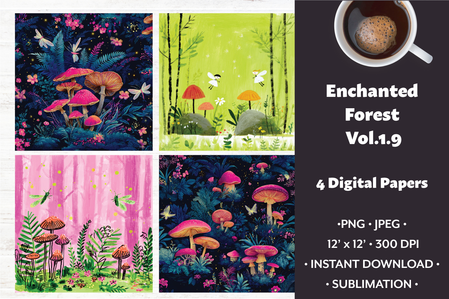 Enchanted Forest Digital Paper Vol. 1.9, 4 PNG & JPEG