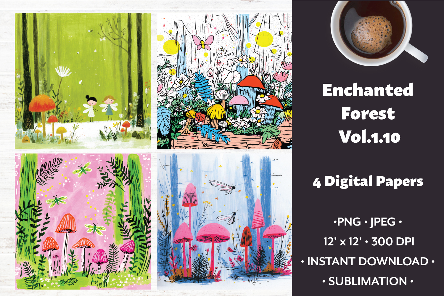 Enchanted Forest Digital Paper Vol. 1.10, 4 PNG & JPEG