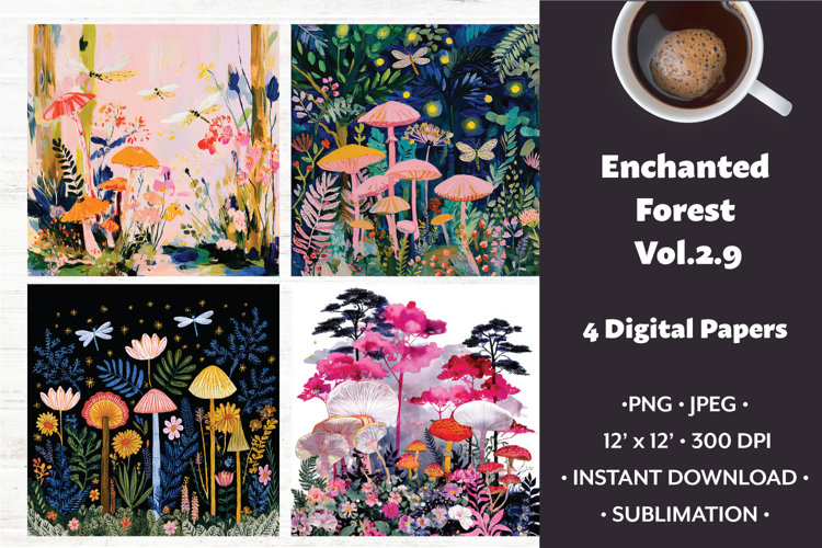 Enchanted Forest Digital Paper Vol. 2.9, 4 PNG & JPEG