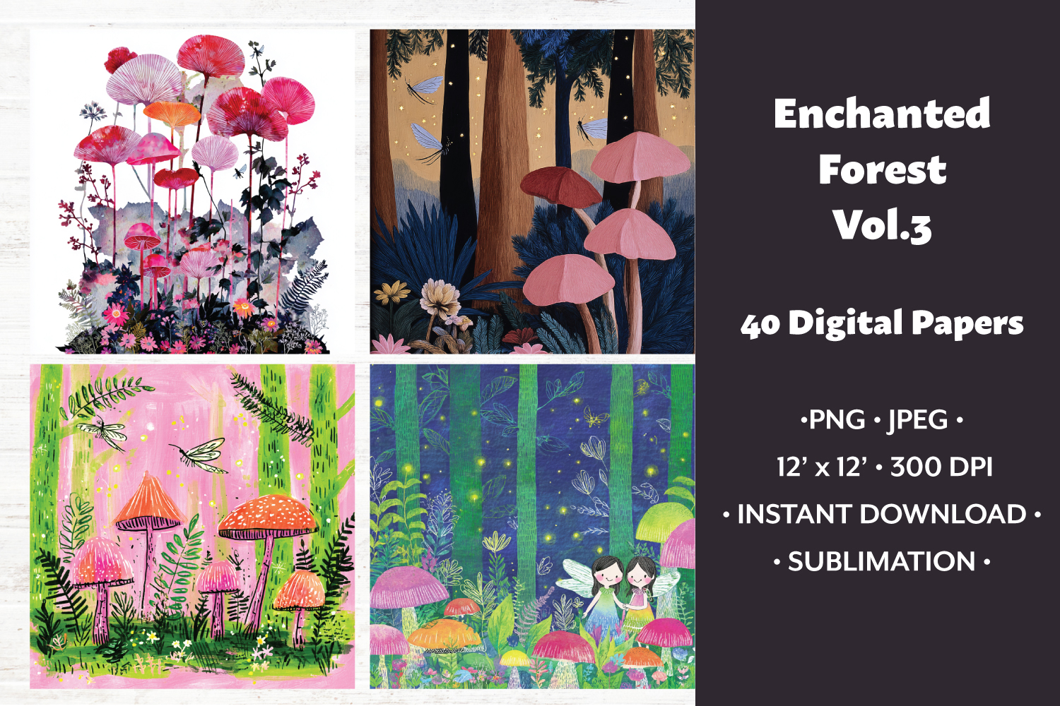 Enchanted Forest Digital Paper Vol.3, 40 PNG & JPEG