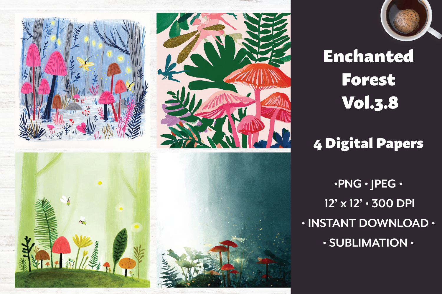 Enchanted Forest Digital Paper Vol. 3.8, 4 PNG & JPEG