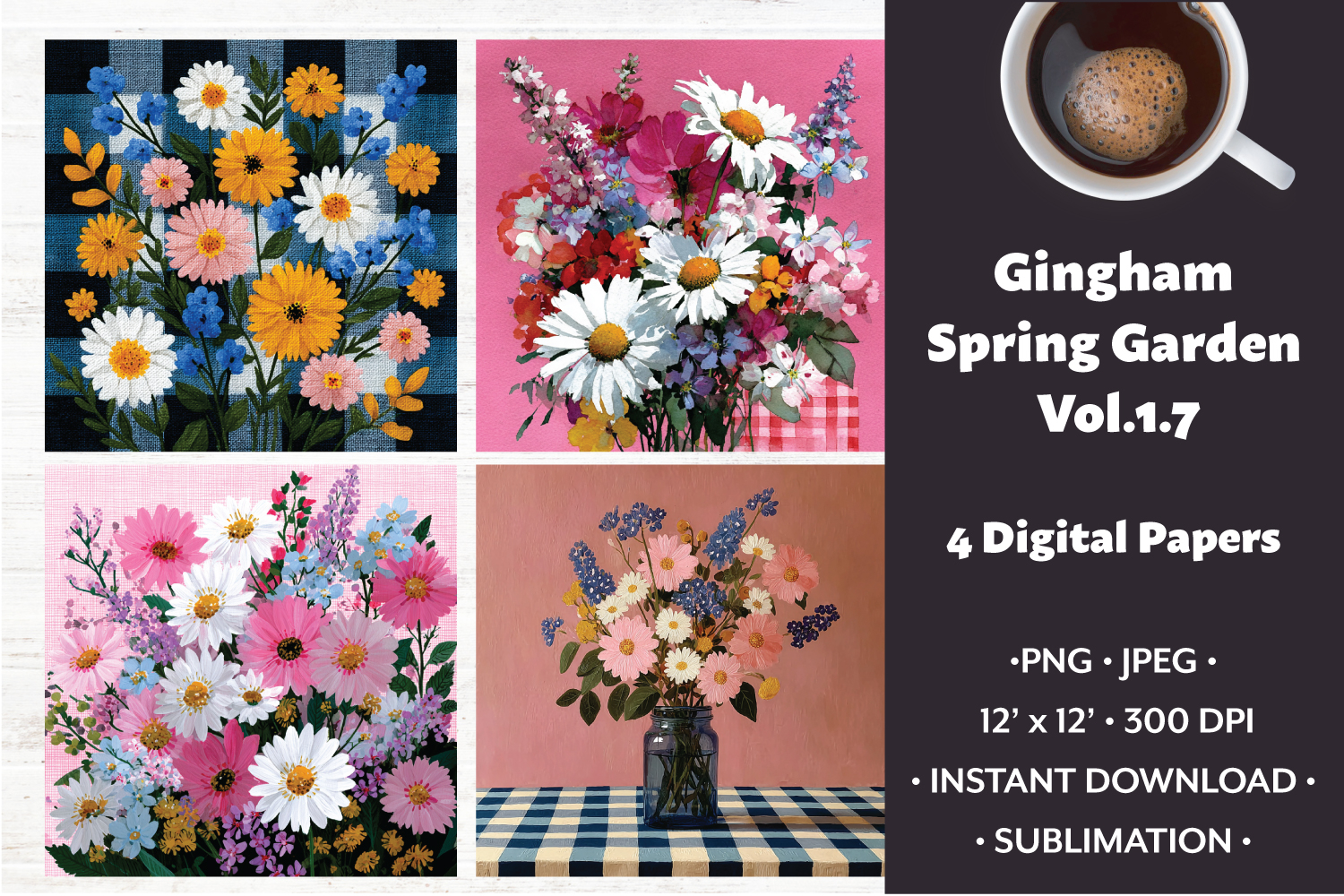 Gingham Spring Garden Digital Paper Vol. 1.7, 4 PNG & JPEG