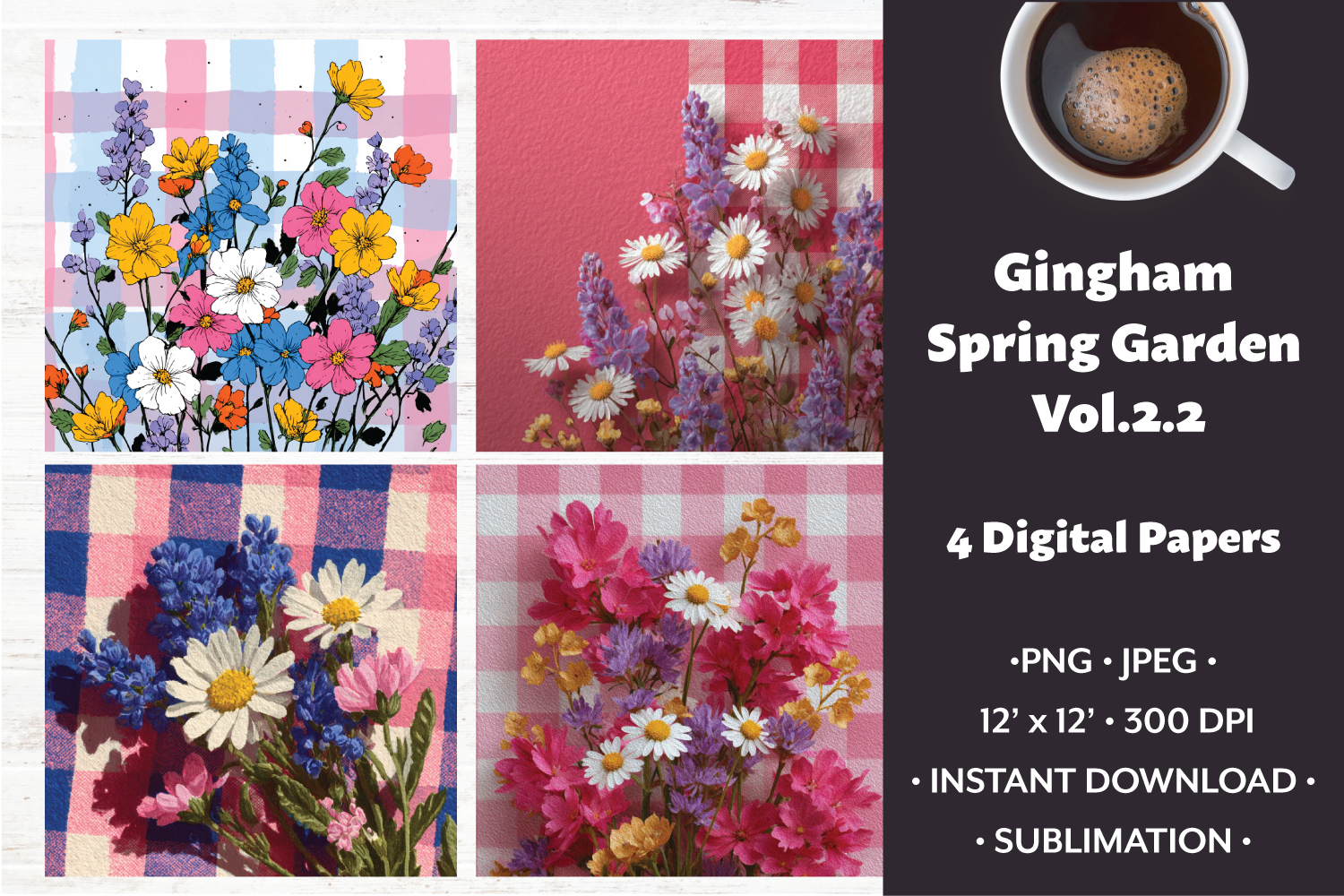 Gingham Spring Garden Digital Paper Vol. 2.2, 4 PNG & JPEG