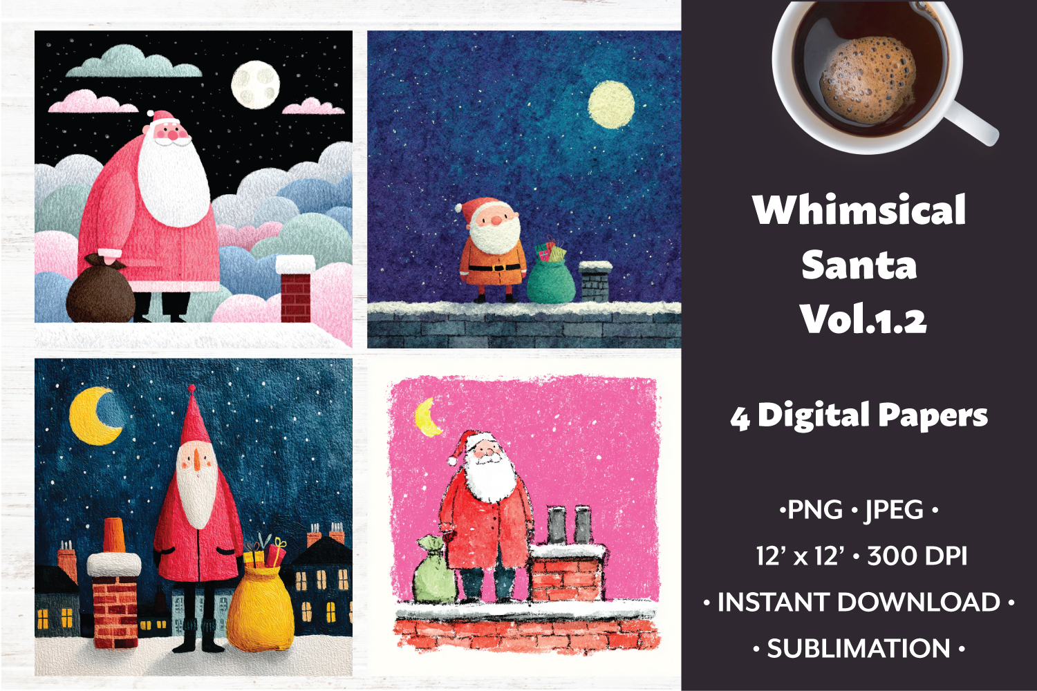 Whimsical Santa Digital Paper Vol. 1.2, 4 PNG & JPEG