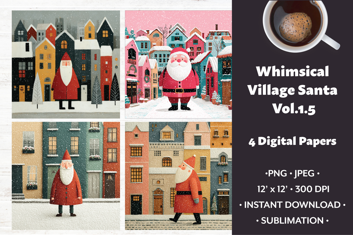 Whimsical Village Santa Digital Paper Vol.1.5, 4 PNG & JPEG