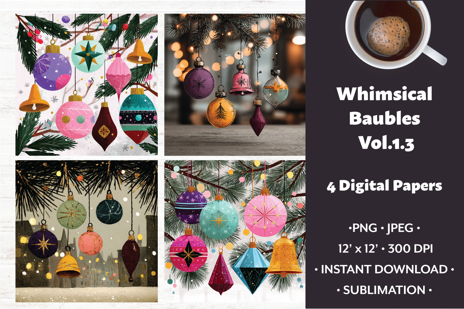 Whimsical Baubles Digital Paper Vol.1.3,4 PNG and JPEG