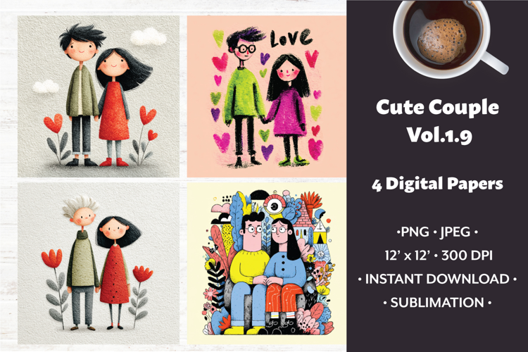 Similar Design Products to Whimsical Couple Digital Paper Vol. 1.9, 4 PNG & JPEG Images